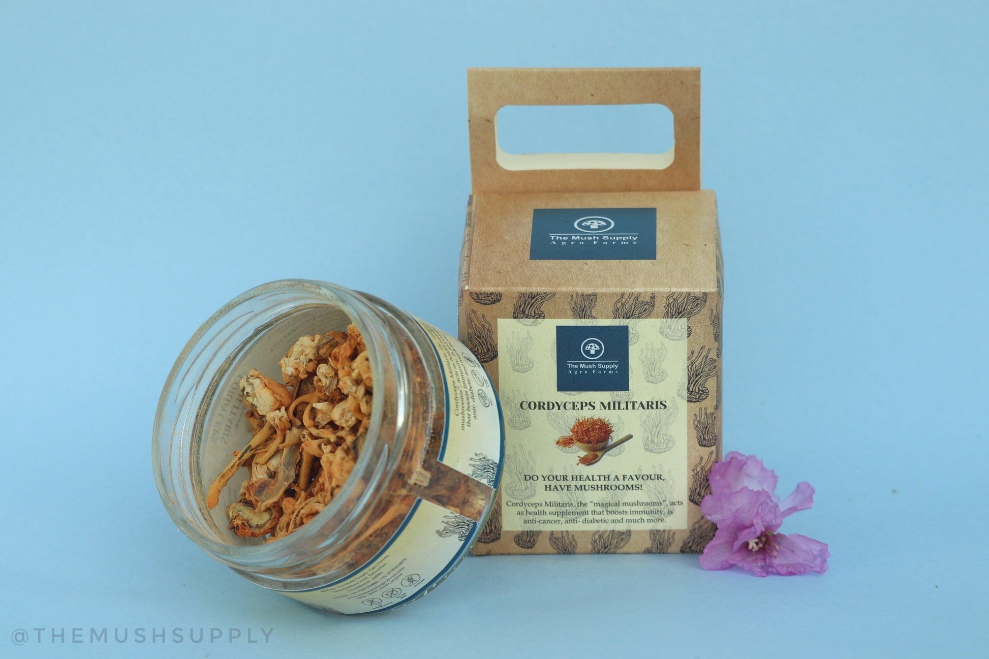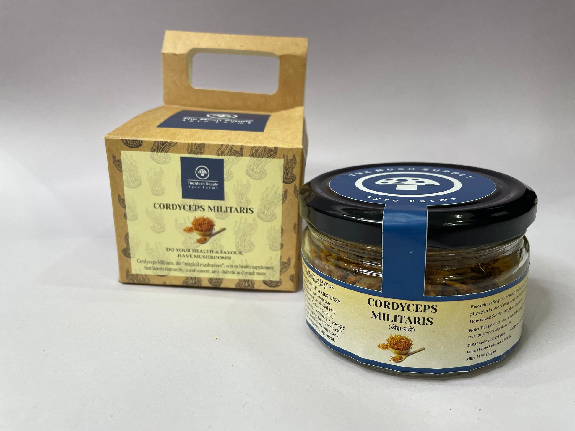 कॉर्डिसेप्स मिलिटेरिस (कीड़ा जड़ी) मशरूम (शुद्ध फलने वाला भाग - 30 ग्राम पैक)